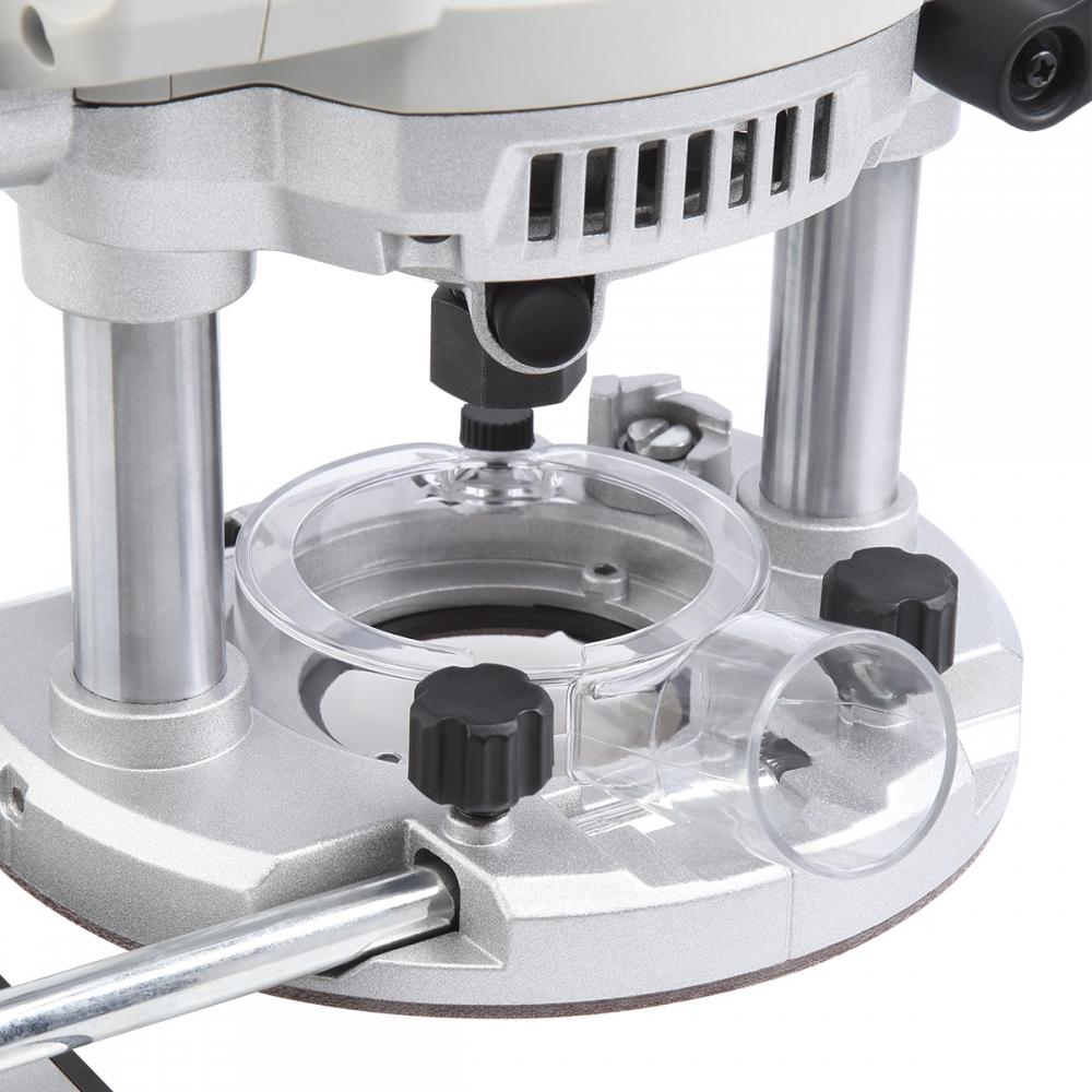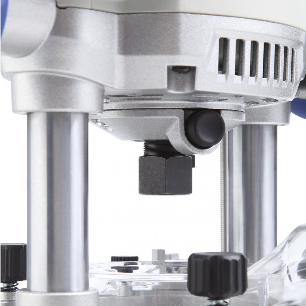 Фрезер оснащён коллекторным электродвигателем, рассчитанным на продолжительный режим работы S1, то есть способен длительно функционировать с постоянной нагрузкой без перегрева, достигая теплового равновесия. Мощность двигателя 2400 Вт – фрезер справляется с большой нагрузкой.