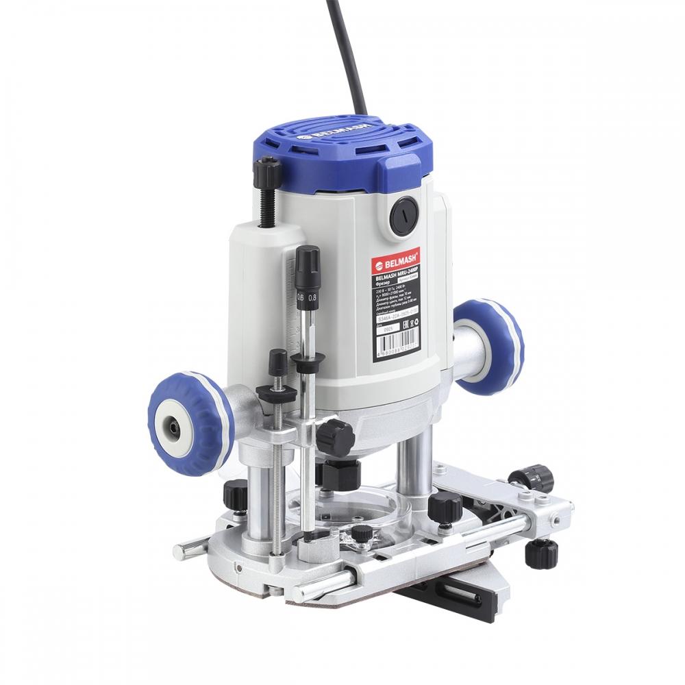 Ручной погружной фрезер BELMASH MRU-2400P предназначен для обработки древесины и древесных композитов: МДФ, ДСП, OSB, фанера, ламинированные плиты. Используется в домашней мастерской и в мелкосерийном производстве.