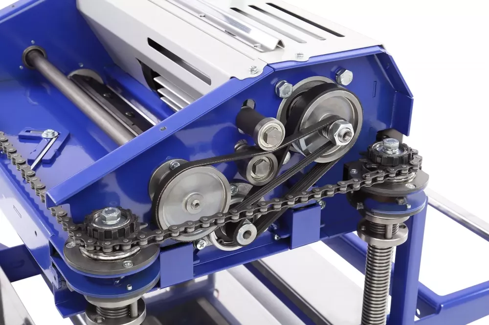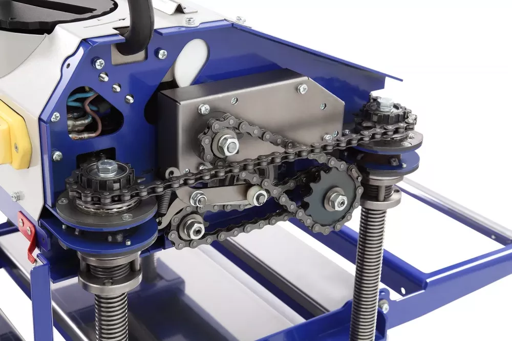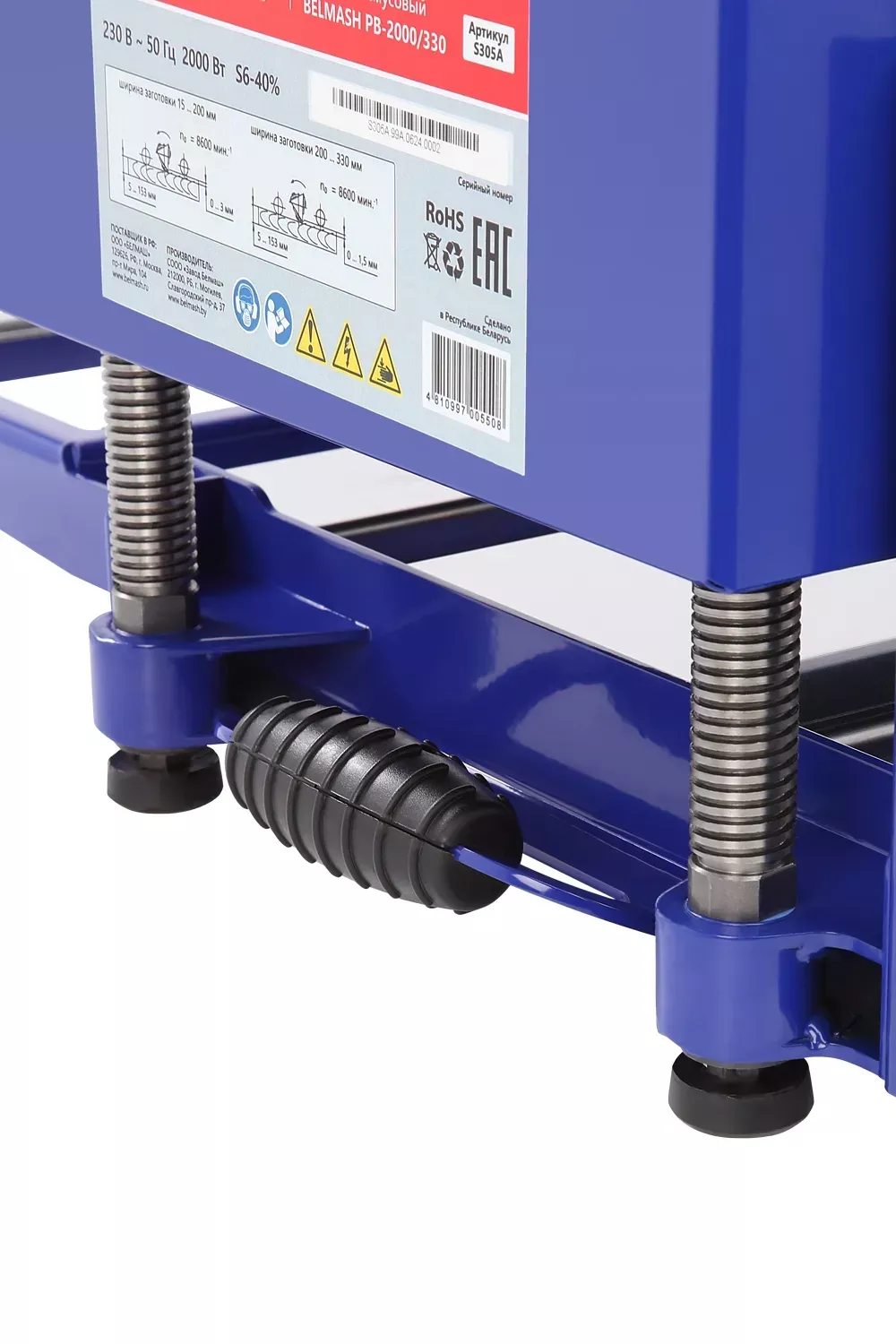 Особенность модели BELMASH PB-2000/330 – режущий блок расположен на четырёх винтовых колоннах из нержавеющей стали. Они обеспечивают возможность максимально точной настройки положения строгального вала над столом. Подъем и опускание режущего блока происходит синхронно и с равномерно-распределенной нагрузкой. Это обеспечивает жесткость конструкции, поглощает рабочие вибрации, увеличивает качество обработки материала.