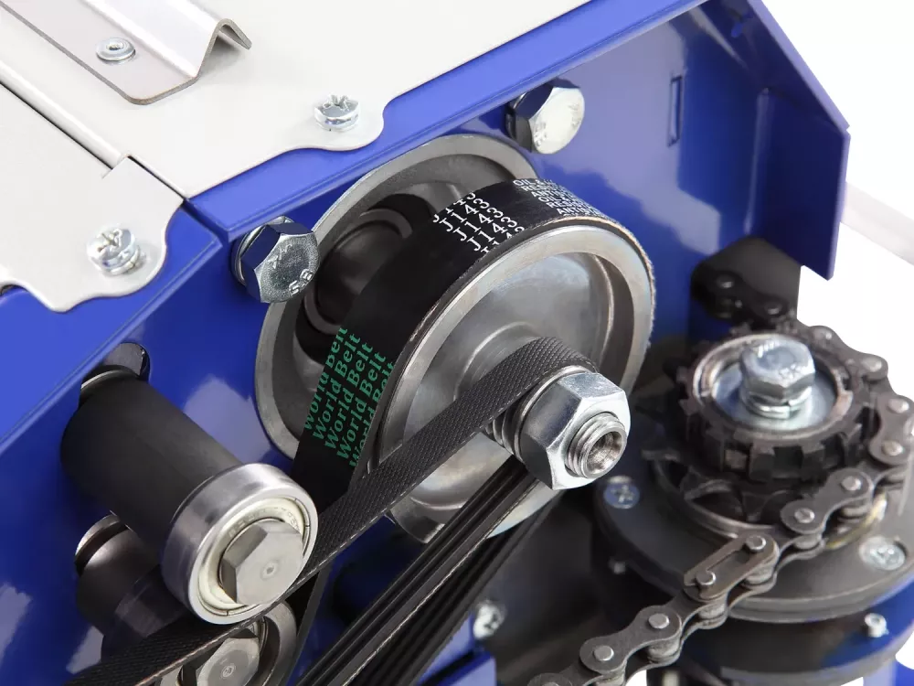 Вращение от двигателя к ножевому валу передается с помощью ременной передачи. стальной трехножевой вал обеспечивает высокое качество обработки. Защитные ограждения и кожухи предотвращают доступ к вращающимся частям станка.