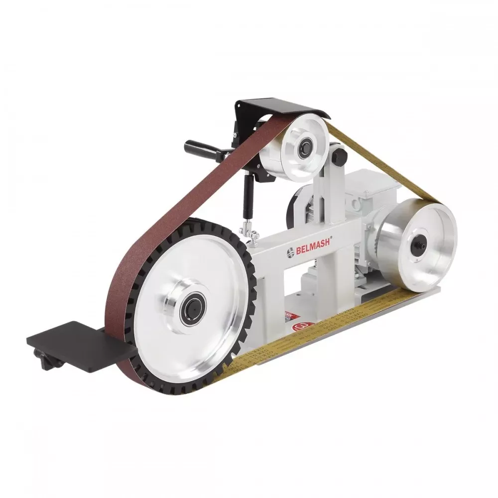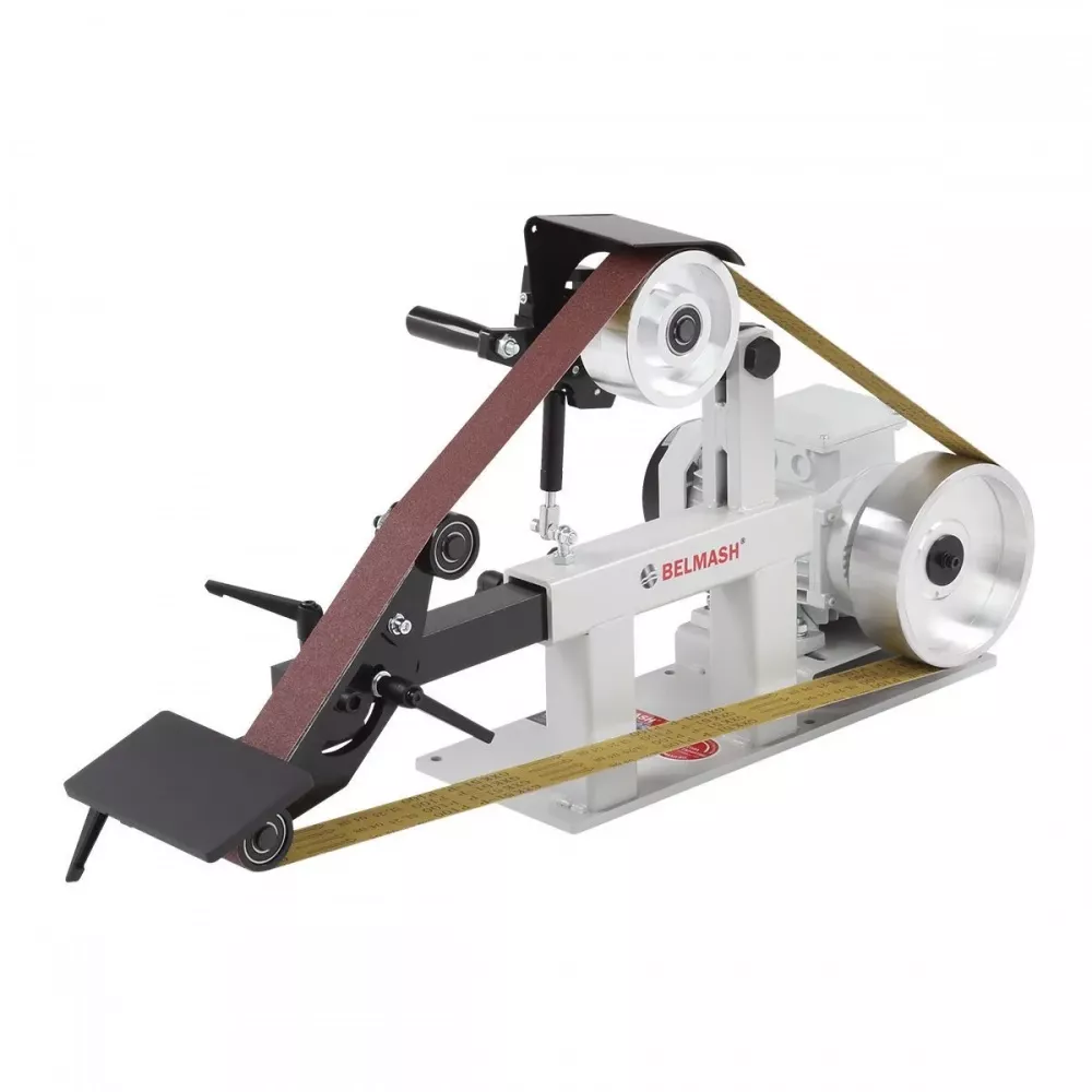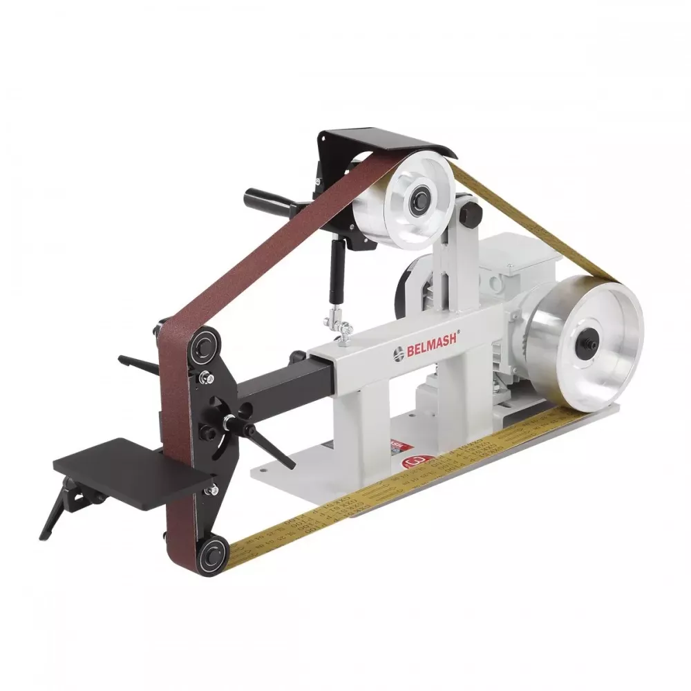 BELMASH BGM-822VS ленточный шлифовальный станок для обработки металла и дерева. Используется в мастерских, на производственных предприятиях и в сервисных цехах, где требуется стабильная и точная шлифовка.