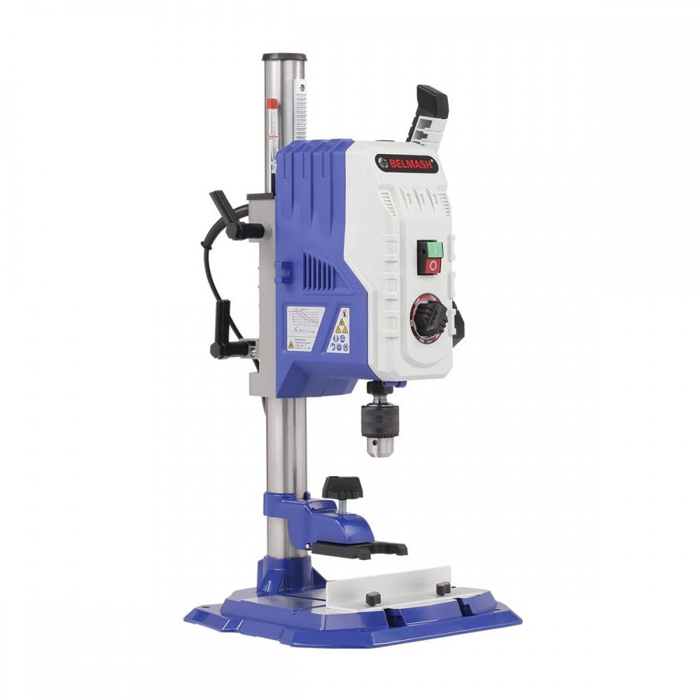 Вертикальный сверлильный станок BELMASH DP250-13MVS - надёжное решение для домашней мастерской, гаража или небольшого производства. Станок создан для сверления сквозных и глухих отверстий, рассверливания и нарезания резьбы в металле, дереве и пластике. Его конструкция обеспечивает точность и безопасность при работе в закрытых помещениях.
